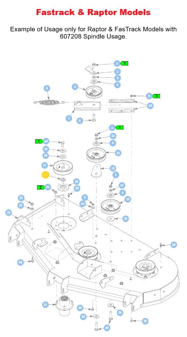 - 607208 - Spindle Assembly (Raptor & FasTrack Models)