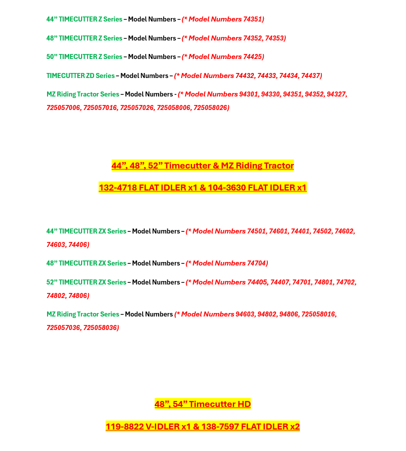 52” TIMECUTTER ZX Series – Model Numbers – (* Model Numbers 74405, 74407, 74701, 74801, 74702, 74802, 74806)