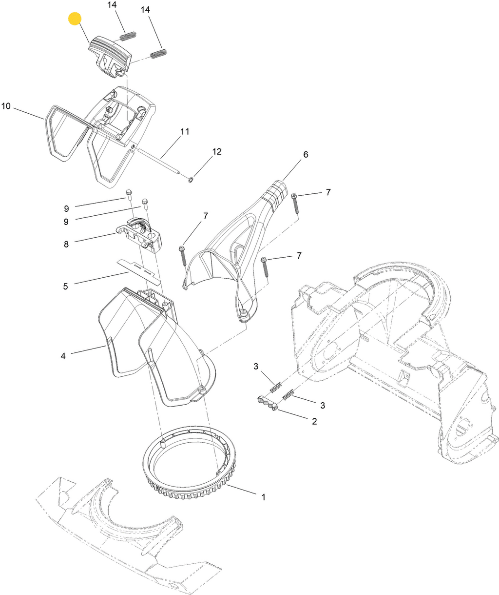 These parts live in the same chute/deflector assembly and are commonly serviced together: