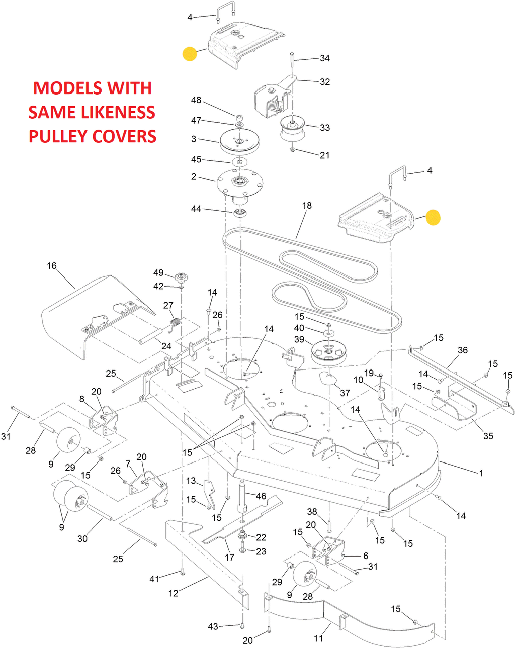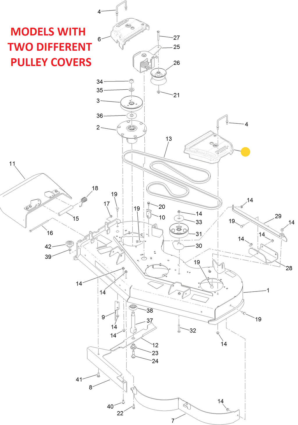 Trust Oem Replacement Left-Side or Left & Right Side 109 6936 Pulley and Belt Sheild to properly fit and covers those belts and pulleys, keeping the operator safe. this easy to remove Guard design allows easy access to cleaning your Mower Deck and fits Toro 48" & 52" Titan HD 1500, 2000 & 2500 series, ZMaster 2000, 3000, 4000, 5000, 6000 Models - Toro 48", 52", 60" Grandstand and Multi-Force Models. Note: All models will have two Belt Covers, in most case there is a Left-hand and Right-hand side Although Some models Such as the 60" Multi-Force will require Two of Part 109-6936 for Both Sides. Left to Right is Determined as you stand or sit on the Operator Station. Differences can also be determined by size. Please refer to the Images Above Product Specifications and Model Fit Guide below to confirm compatibility before purchasing.