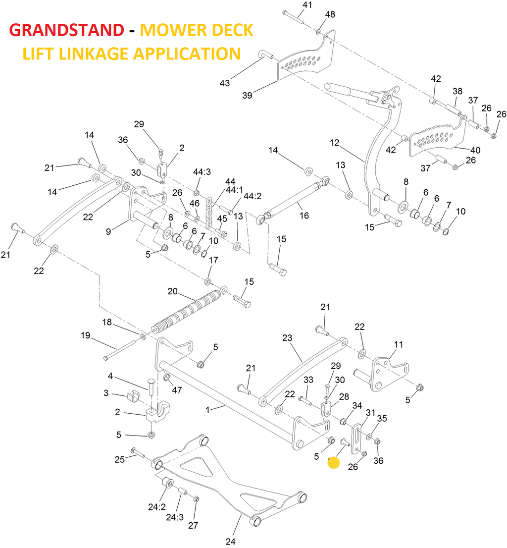 48” GRANDSTAND (Standard) - MOWER DECK LIFT LINK – (* Model Numbers 71504, 72504, 72518, 74504, 74518, 74538, 74548, 74574, 74578, 74588, 79504, 79518, 79548, 79574)