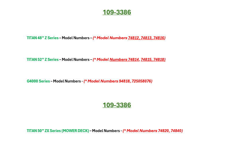 48” & 50” TITAN Z, ZX - 110-6766 MODEL/SERIES USAGE