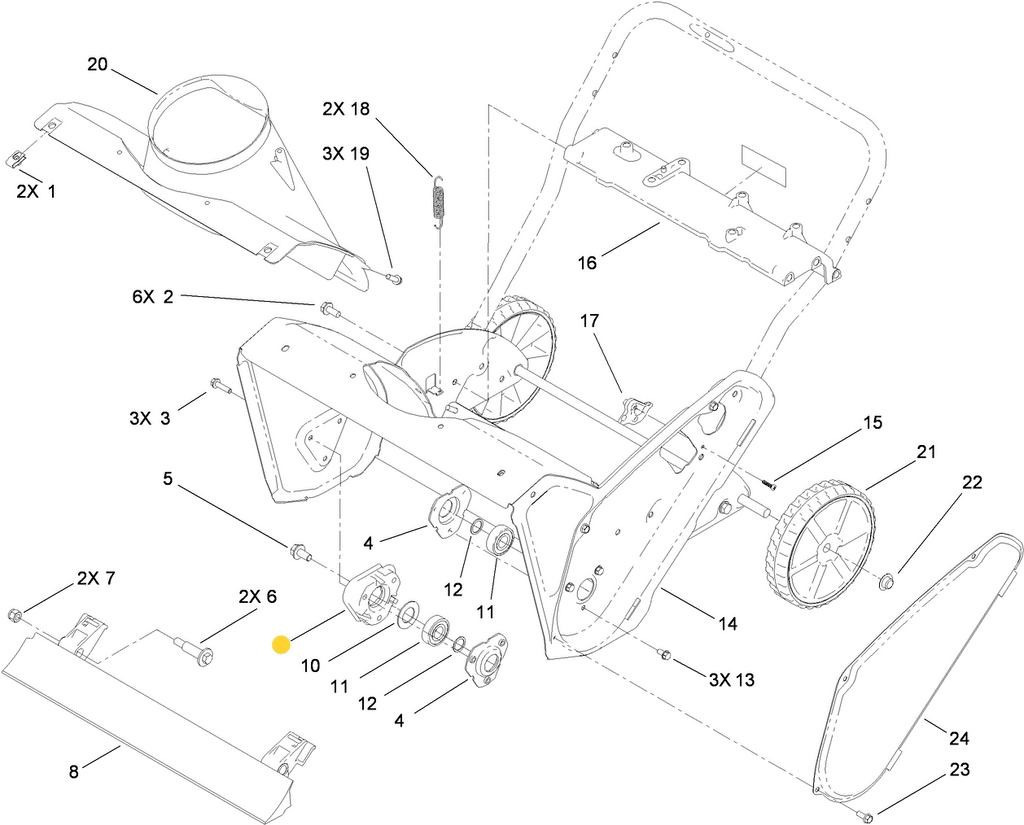 - Snowblower Auger Usage - Commonly Used in Select Power Clear and Quick Clear Models That Contain a slightly different design of Auger Housing allowing it to use a consistent part list as other Power Clear Models. Toro Designed an Auger Bearing Spacer that Enables the Auger Bearing Flange and Auger Shaft Bolt to Insert into. Auger Bearing Spacer 114-3781 is Assembled on the Inside Right-Hand side of the Auger Housing as you stand Behind the Snowblower in the Operator Control Station - For A Better Understanding Review the Diagram in the Images Above.