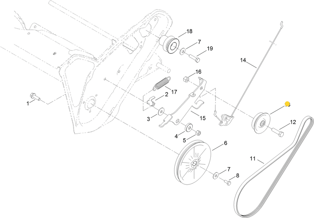 - NOTES & DETAILS: Toro OEM 114-3785 IS COMMINLY USED - 114-3785 Contains Steel Alloy Roller Bearing that Allow the Pulley to Match the Speed of the Engine RPM's as the Operator Applies Direct Tension Between the Belt and Idler Pulley while Engaging the Auger or Rotor - Fastens Directly on the Outside side of the Idler Pulley Tensioner Arm