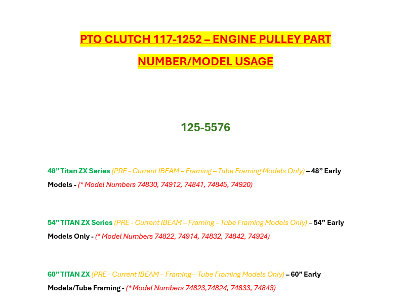 48”, 54”, 60” TITIAN ZX - 117-1252 MODEL/SERIES USAGE