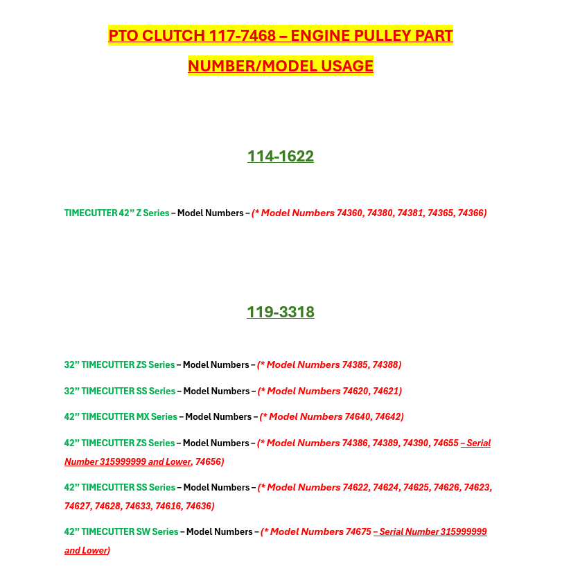 42” TIMECUTTER MODELS - 117-7468 MODEL/SERIES USAGE