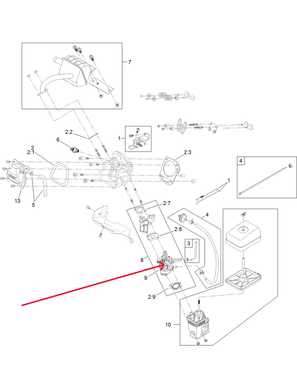 - Push firmly until fully seated; make sure it points correctly at the choke indicators.