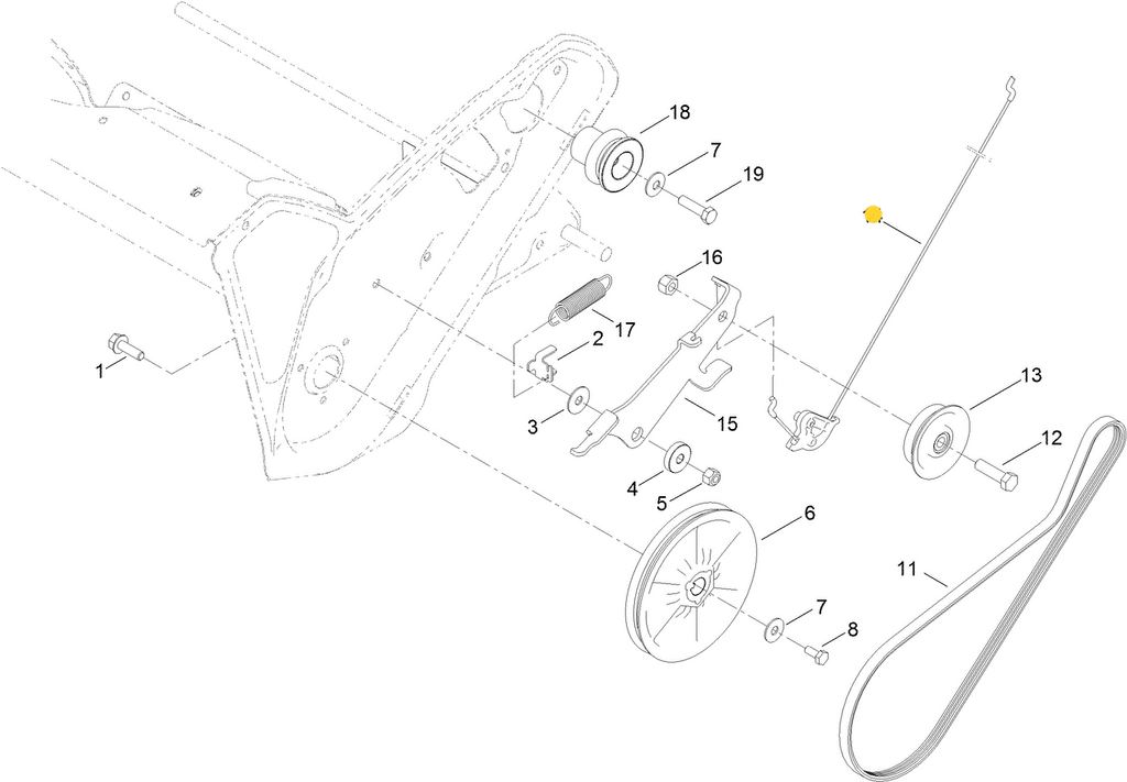 - NOTES & DETAILS: Toro OEM 117-9145 IS COMMINLY USED - Inserts into the Idler Pulley Tensioner Arm as well as the Clutch Spring/Cable Adjuster Plate and Tightens the Belt when the Operator Engages the Auger/Rotor Bail Handle or Upper Handle Clutch Bail - The Tightening Action of the Cable and Belt Engages the Auger/Rotors.