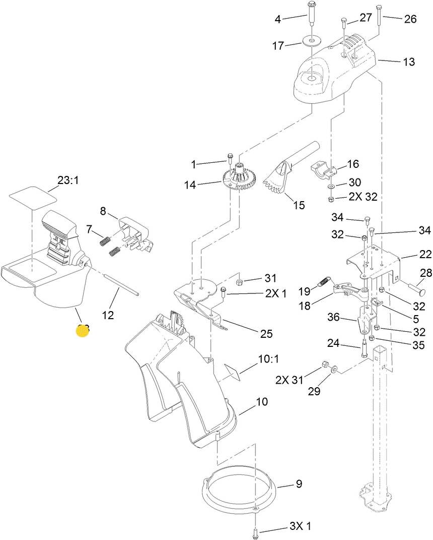 - Application: Chute assembly (top deflector / throw angle control)