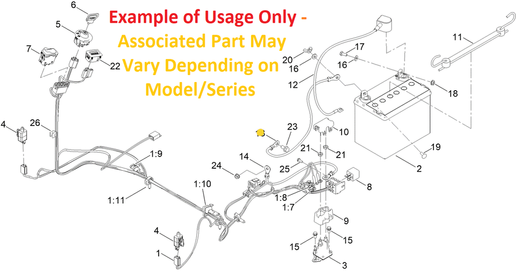 * TORO Uses a Different Bolt System However We here @ Hilly Ridge Would Recommend the Following Hardware to Ensure a Stronger Grounding Connection and to Eliminate Potential Frustrations. Battery Fasteners Only List Due To Variation on Engine Options - Most Ground Source are Connected directly to the Engine Starter Assembly or The Engine Fastner Bolts to Find Starter Assembly Fastners Look Under the Engine Individual Engine Make and Model.