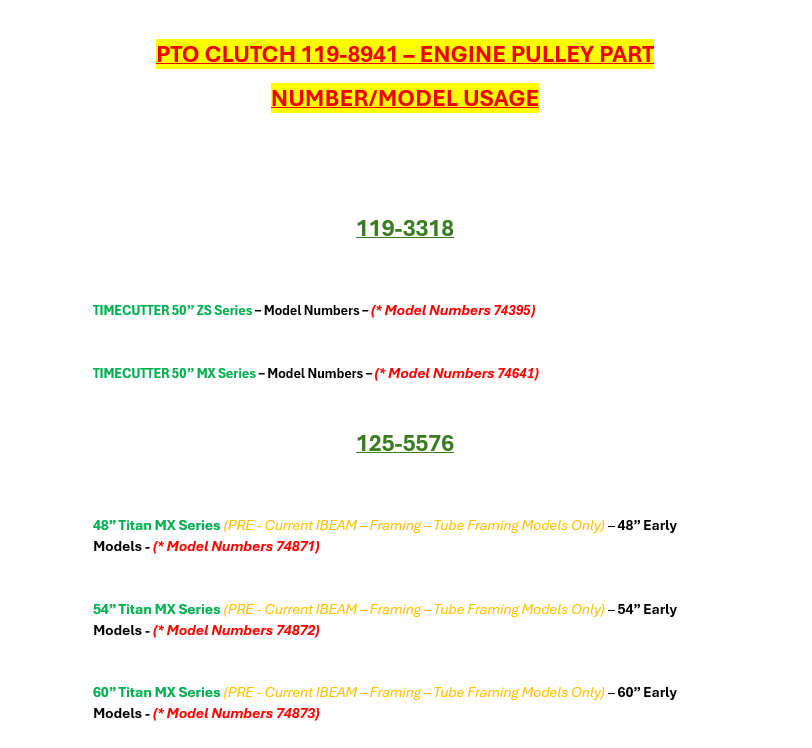 50” TIMECUTTER - 119-8941 MODEL/SERIES USAGE
