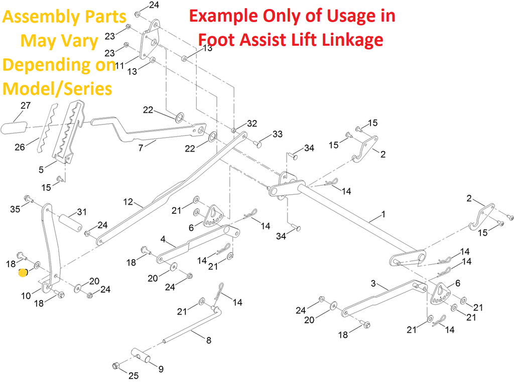 - APPLICATIONS: Most Commonly Used in Mower Deck Foot Assist Lift Linkage and Motion Control Handles - Used in Applications where there needs to be a rotating action, reducing wear from Metal against Metal Rotation as well as Reducing Excessive Slop or Play while still Allowing the rotation of Linkages....