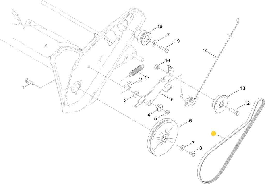 - NOTES & DETAILS: Toro OEM 121-6622 IS COMMINLY USED - 121-6622 Travels from the Engine Pulley to the Auger/Rotor Pulley - Rotates the Auger When Pressure is Applied by the Tensioner Idler Pulley.