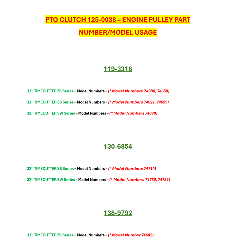 32” TIMECUTTER MODELS - 125-0038 MODEL/SERIES USAGE