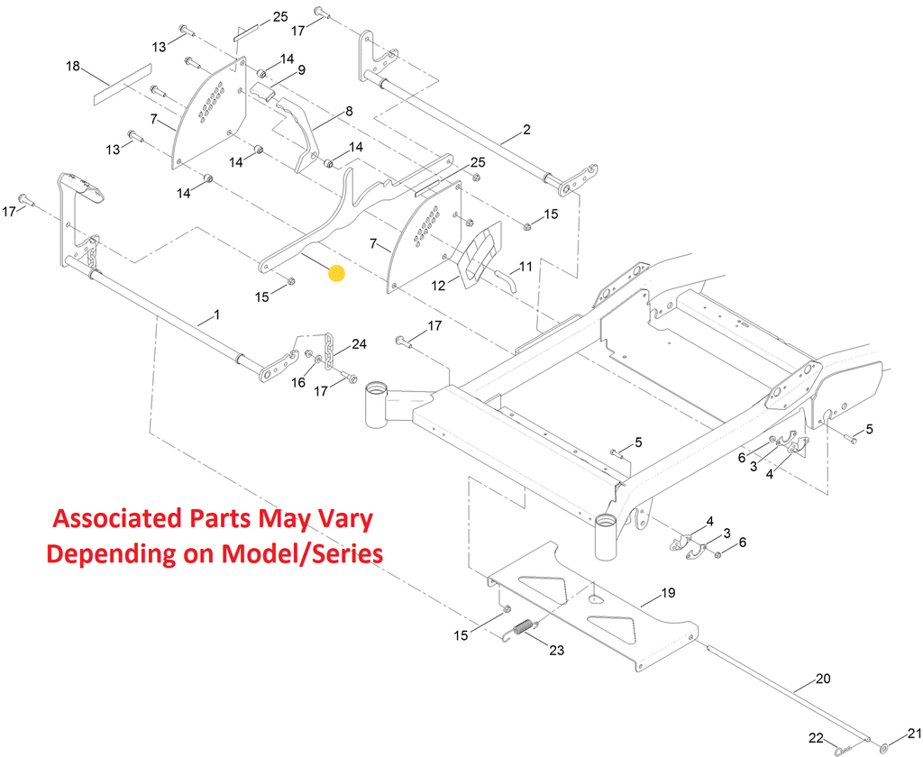 - 133-4430-03 - MOWER DECK PIVOT/LIFT LEVARAGE ARM (FRONT) - (Travels Across/Between the Two Frames of the Mower and Attaches to the Lift Linkage and Lift Linkage Mower Deck Chain - Front Mower Deck Pivot Arm Also Contains the Foot Lift Pedal) - *Review Part Number Model Fit Chart to Ensure Correct Fit x1 Per Unit