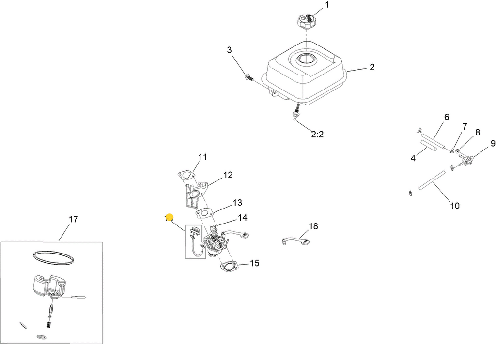 - 127-9403 or 147-7086 - FUEL LINE HOSE - CARB. to FUEL TANK (Enables Fuel to Travel from the Fuel Tank to the Carburetor Bowl - Fuel Line Only Connects to the Lower End of the Tank Fuel Filter and from there Connect to the Carburetor - Fuel Filter Screws into the Bottom of the Fuel Tank) x1 Per Carburetor