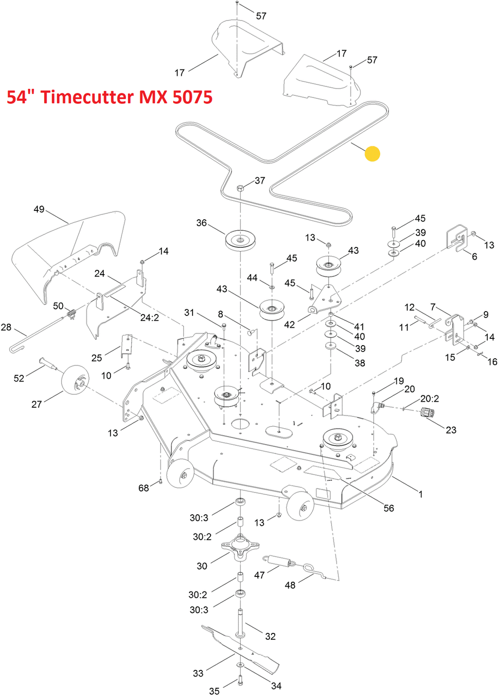Toro OEM 130 0843 Mower Deck Belt is Crafted only from the Finest of Materials and Rigorously and Extensively Tested to verify it withstands the toughest of Operating Conditions. Expertly crafted from premium Aramids and/or Kevlar materials, the Toro OEM 130-0843 Is made to Fit Toro Early and Late 54" Timecutter My-Ride, SW 5425 (* Model Number 74793), SS 5425 (* Model Number 74740 & 74741) and Early and Late 50" Timecutter MX 5075 (* Model Number 74778 and 74741) Models (* Refer to Model Fit Chart, Associated Parts Chart and Special Notes). Don't settle for imitations or substitutes when you can have - worry-free, designed to fit options, knowing that your Toro Mower Deck Belts are built, tested, and designed specifically to OEM Standards and Expectations. Please refer to the Images above; Product Specifications and the Model Fit guide below to ensure proper fit.
