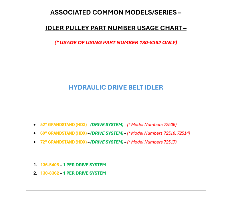 72” GRANDSTAND (HDX) – (DRIVE SYSTEM) – (* Model Numbers 72517)