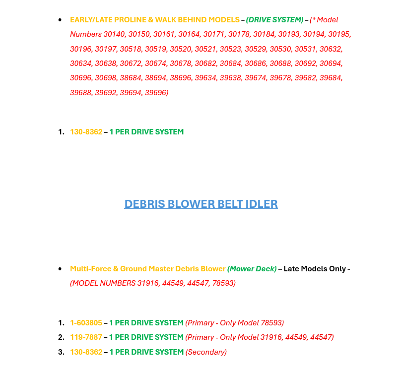 NOTE: Due to Serial Number and/or Model Design changes it is always Beneficial to Eliminate Confusion by Searching your Part Type and Model Number at the Top of our Website Page in the Search Tab. That in return will search the Model Fit Chart at the Bottom of the Page to Find the correct Model/Pulley Part Number Combo.