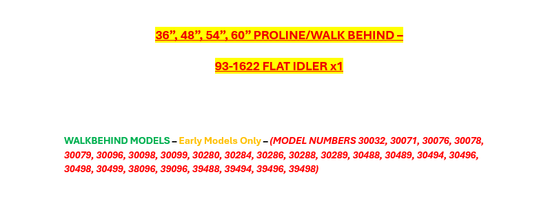 The Toro OEM 130 8362 Hydraulic Drive Flat Idler is manufactured with strong steel alloy and high-quality ball bearings to ensure dependable operation in harsh, wet, hot, and dirty conditions. Built to original specifications, this Flat Idler is designed to maintain correct tension on Hydraulic and/or Traction Drive Belts. 130 8362 OEM Flat Idler is compatible with a variety of Toro models, including the Current 52",60", 72" Grandstand HDX Models (Mounts to Left Hand Hydrostatic Pump/Transmision - as you Stand on the Operators Platform)- Early PROLINE & Walk Behind Models (Set of Model Numbers may not be listed on the Proline Idler Pulley Usage Chart) - Current/Late Debris Blower (Multi-Force & Ground Master Model. Due to Variation Within Model Numbers/Series, please refer to the Images above; Product Specifications and to the Model Fit Chart below for an Accurate Break down of Specific Model Number Usage. For Additional Fastner & Associated Part references for Idler Pulley 130-8362 review the Associated Parts Link Below the Model Fit Chart. If You are Having Trouble Finding the Correct Hydraulic Idler Pulley Combination for Your Model, there is also a Chart with Detailed Break Down with Common Family and Model Numbers with the Correct Idler Pulley Part Number Combination Above in the Images as well as Below the Model Fit Guide and The Associated Part References. If this still doesn't prove helpful feel free to contact us with your questions. Part Number 1-323285 and E323285 Supersedes to Part Number 130-8362.