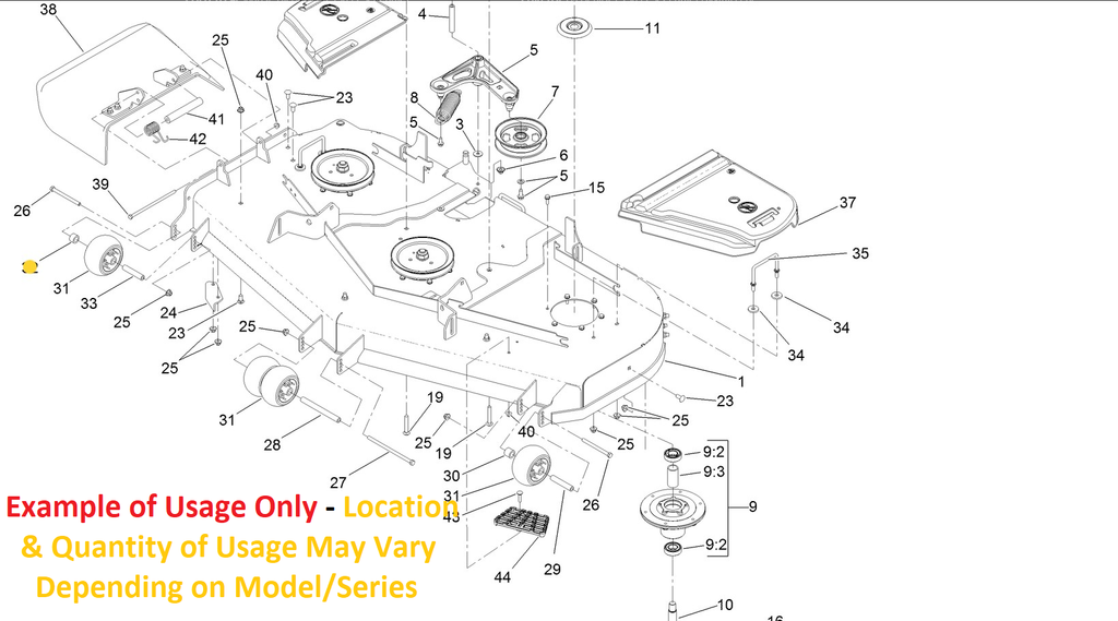 NOTE: * 133-2128 Anti-Scalp Wheel Spacer May be Used in Different Locations and in Different Quantities Per Mower, Depending on the Mower and Series Deck Size Ect. To Ensure a Correct Fit, Review the Model Fit Chart and Measurements in the Images and the Specification Chart in Comparision with the Needed replacement if this still Prove to be un-helpful feel free to Reach out to us here at Hilly Ridge for any additional Questions.