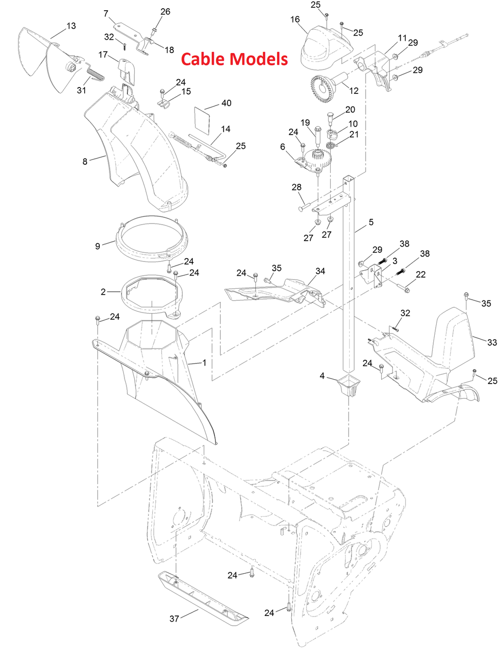 - Function: Directs the Snow Stream as well as control Left-Right Rotation
