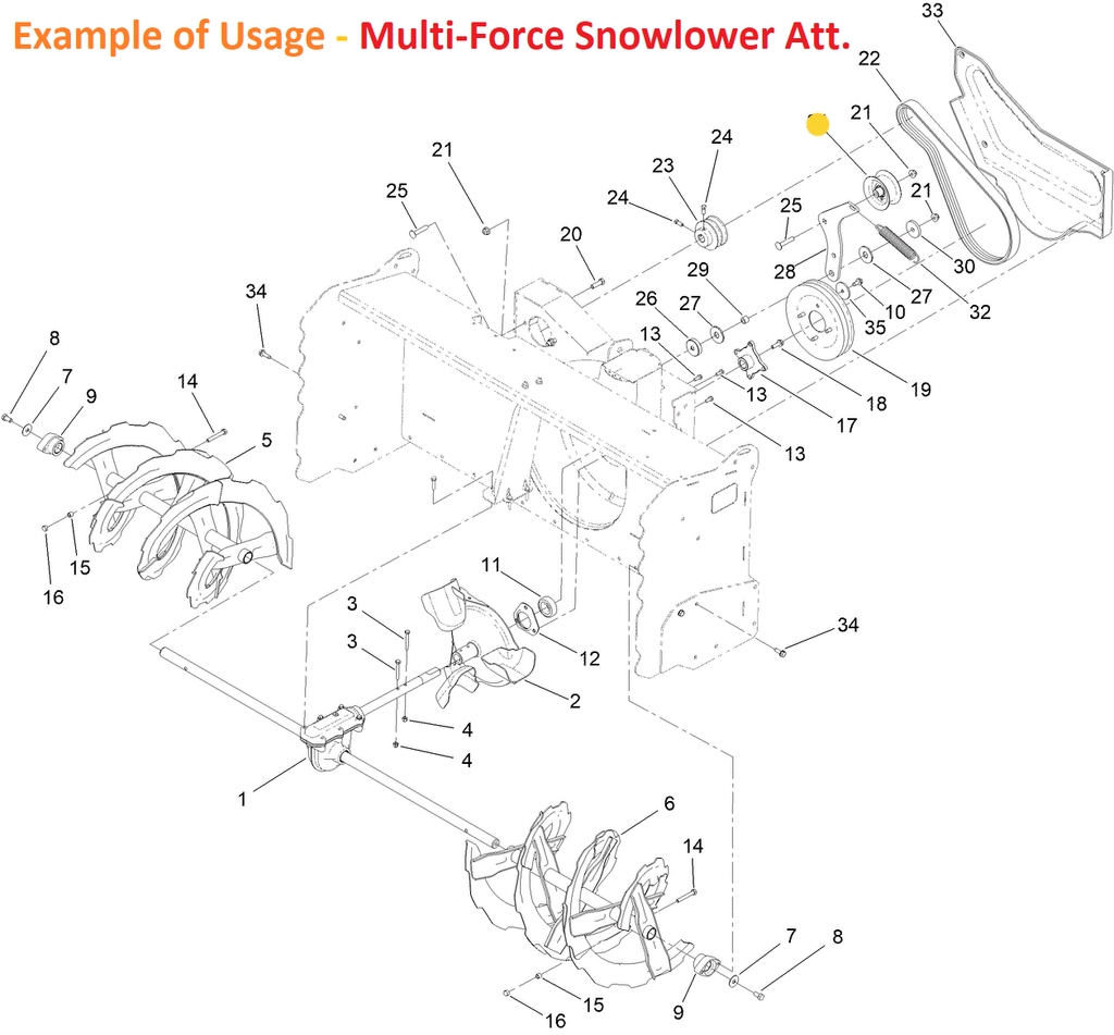 - NOTES & DETAILS: Toro OEM 136-6531 IS COMMINLY USED - 136-6531 Most Common Usage is Used as the Tensioner Auger Flat Idler for the Auger V-Belts on Power Max HD & Power TRX Snowblower Models and is Fastened to the Pulley/Auger Clutch Arm applying Pressure to the Auger Belt When the Operator Engages the Operators Auger Bail Lever. Multi-Force Snowblower Attachment Model Usage of 136-6531 Fastens Directly to an Idler Arm that Uses a Spring to Retain Constant Tension on the Auger Belt and Uses an Electric Switch and Electric Clutch System for Engaging and Dis-Engaging the Auger/Rotor Assembly.