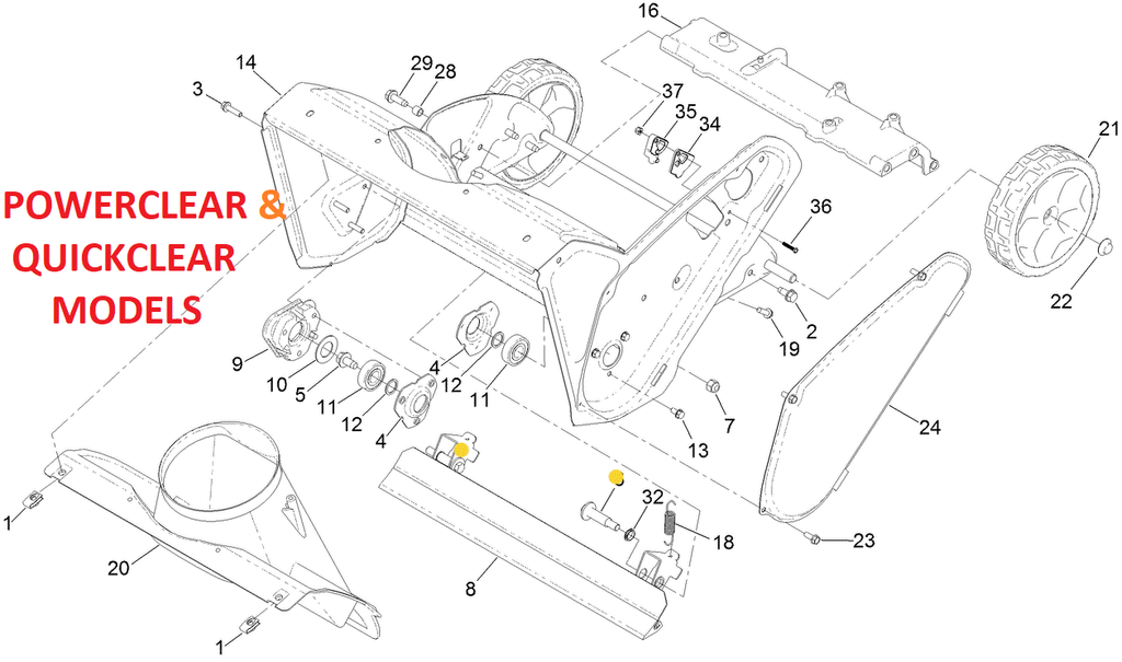 - Single Stage Quick Clear & Power Clear Snow Blower - Lower Handle Assembly Lower Whole - Scraper Bar Fastner