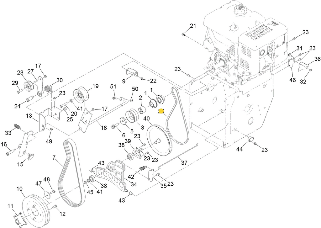 - NOTES & DETAILS: Toro OEM 137-6151 IS COMMINLY USED - 137-6151 Traction Belt Travels from the Engine Pulley to the Traction Pulley - Tension on the Drive Belt and Idler Pulley or Constant Allowing the Traction Pulley Rotation to be Constant. When the Operator Engages the Traction Control Handle/Lever it Applies Pressure Between the Traction Pulley and the Rubber Friction Wheel causing the Shaft and Drive Components Parts to Rotate with the Traction Pulley and the Rubber Friction Wheel. Speed of the Snowblower travel as well as Forward and Reverse is Select by the Amount of Friction, Rotational Speed, and Location of the Friction Wheel Against the Beveled Style Traction Pulley as Selected by the Operator.