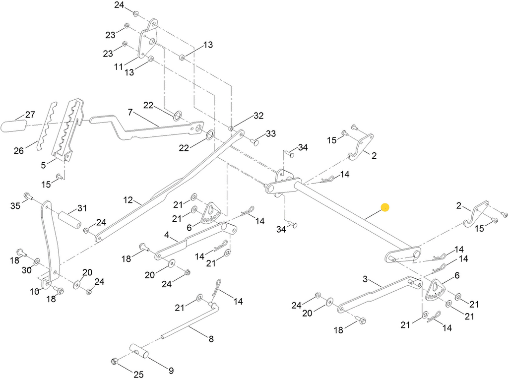 - 137-9847 - FLANGE SHOULDER BOLT - (Retains the Foot Pedal Bracket to the Mower Frame as well as the Foot Lift Link to the Foot Pedal Bracket) x2 Per Foot Pedal Bracket