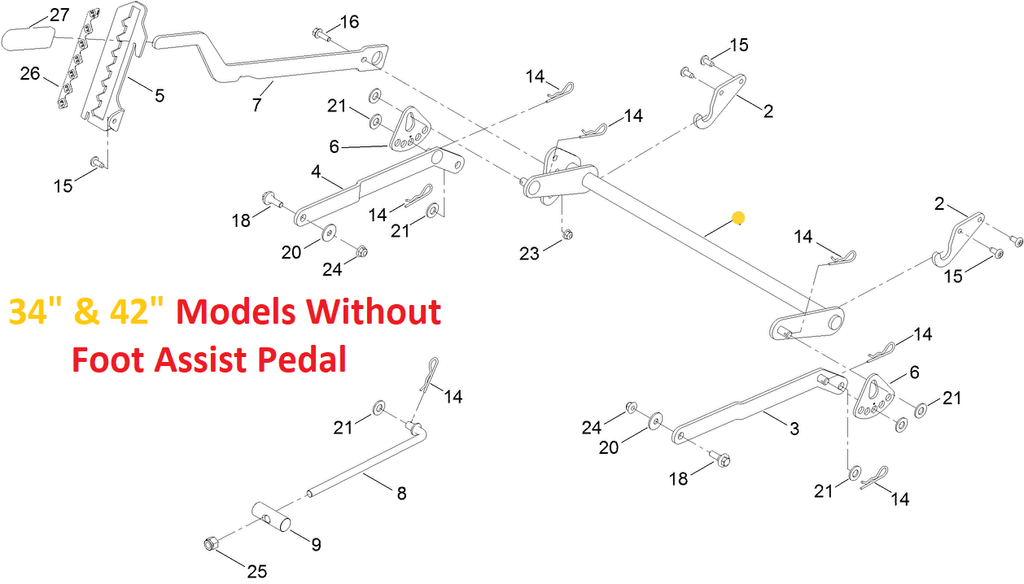 161-4527 - FOOT PEDAL ASSIST KIT FOR TIMECUTTER - 34" & 42" Timecutter Models (161-4527 is for 34" & 42" Models Listed below in the Model Fit Chart - 161-4527 Contains the Individual Part Listed Above - For Individual Replacement Part Refer to the Foot Pedal Associated Parts Reference Above)