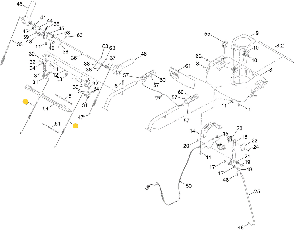- NOTES & DETAILS: Toro OEM 138-0726 IS COMMINLY USED - 138-0726 Cable End Inserts into the Operator's Steering Clutch Levers on Each Handle Assembly - 138-0726 Cable's Hook End Equipped with the Plastic Retaining Clips Pushes into the Shift Collar Bracket that Mounts to the Intermediate Shaft with the Shift Collor Guides, While the Hook or Shoe of the Cable End Hooks into the Shift Collar and Enable the Shift Collar to Rotate Away From the Shift Collar Guide when the Operator Engages the Steering Clutch Levers. This Enables the Wheel or Unit Side that is Engaged to Free Wheel Disengaging the Drive Capabilities to that Side, while Pressure to the Steering/ Traction Clutch Lever is Applied - Giving the Snowblower Steering Capabilities. Snow Blower's with the Power Steering Feature Will Require Two Power Steering Cables - One for Each Side.