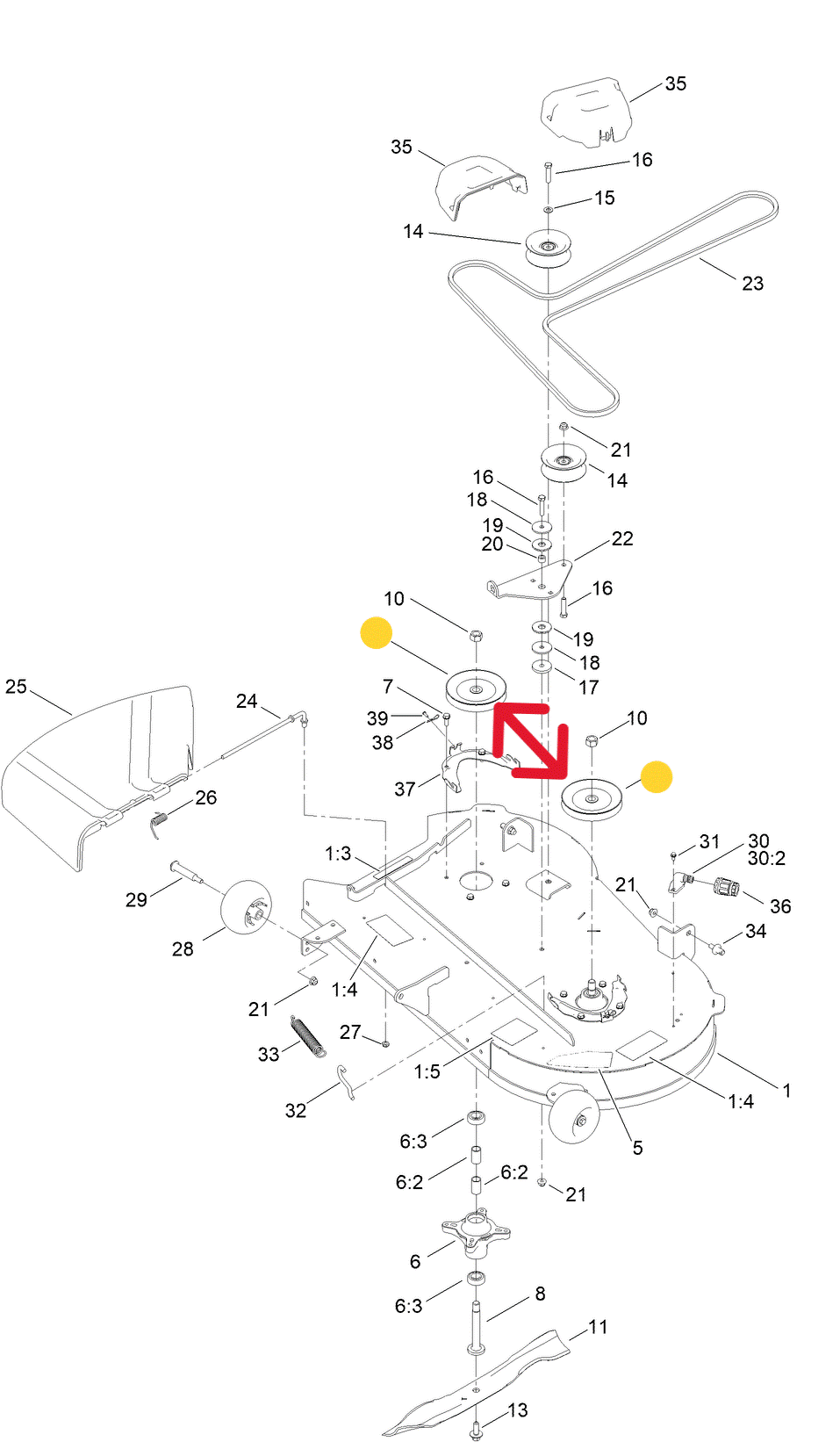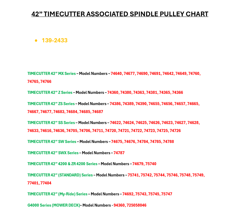 NOTE: To Gain a better understanding of part number variations for Timecutter Models Refer to the 42" Spindle Pulley Chart below.