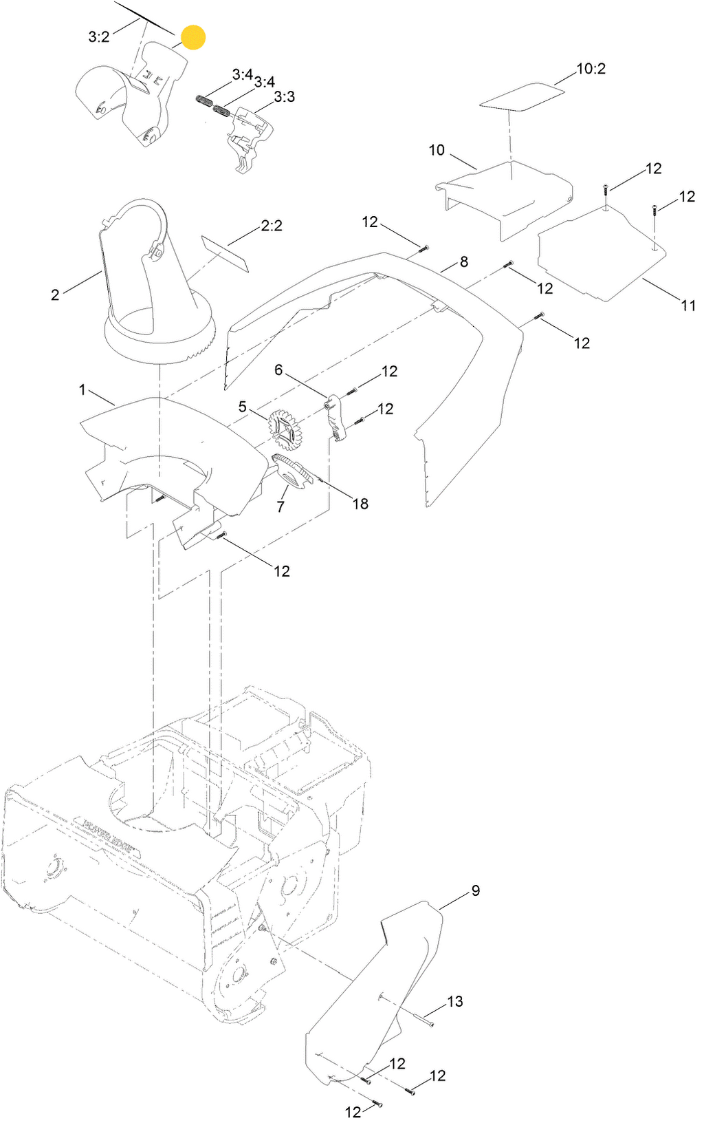- Transfer or Assemble: The spring/trigger parts to the new deflector as needed - All Components are Clip Together Including the Chute Deflector to Discharge Chute (common: 136-7136 compression spring, 117-2314 trigger).