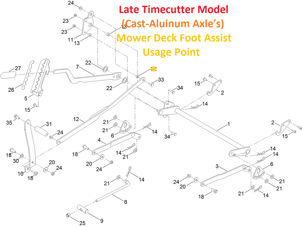 NOTE: For Current/Late 34", 42" Timecutter Models (With Cast Aluminum Axle's) - Mower Deck Foot Assist Lift Kit Does Not Come Factory Installed However is Available and does Contain 140-2093 in it. Part Number 161-4527 Deck Assist Lift Kit is for 34" & 42" Models Listed as Optional Models below in the Model Fit Chart.