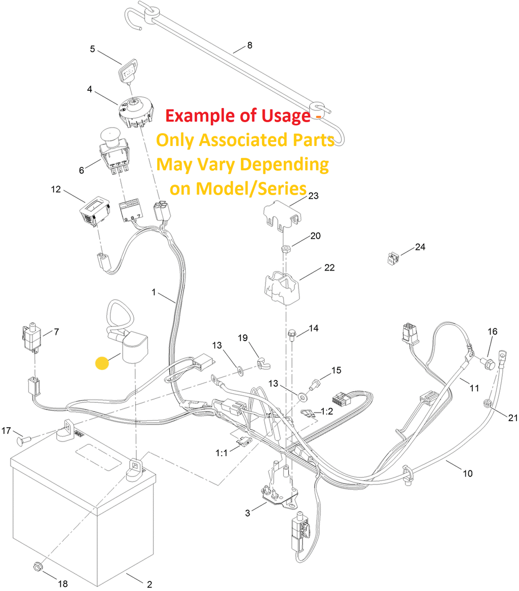 - 117-1197 - SOLENOID (Retains the One End of the Battery Wire and Transfers Battery Current with the Different Functions of the Ignition Switch and Individual Safety Switch Circuits) x1 Per Unit