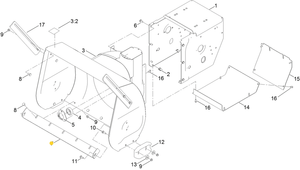 - 137-3059 - CARRIAGE BOLT (Retains the Scraper Bar to the Bottom of the Snowblower Auger Housing - Inserts from Inside the Auger Housing and Travels Through the Scraper Bar, Adjustable Skid Plates and Auger Housing Allowing the Nut to Be Attached to the Back of the Auger Housing) x2 Per Scraper Blade *Used Only on the Whole on the Side of the Auger Housing or Whole for the Adjustable Skid Plates
