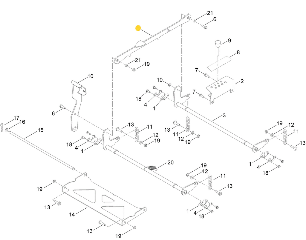 - 145-0557-05 - HEIGHT OF CUT LINK - (Connects the Front Mower Deck Pivot Arm/Foot Pedal Combo to the Rear Pivot Arm and Enable the Operator to use the Height of Cut (HOC) Selection Bracket and Pin to Set his Preferred Cut of Height as well as lift the Front and Back of the Mower Deck Simultaneously) x1 Per Unit