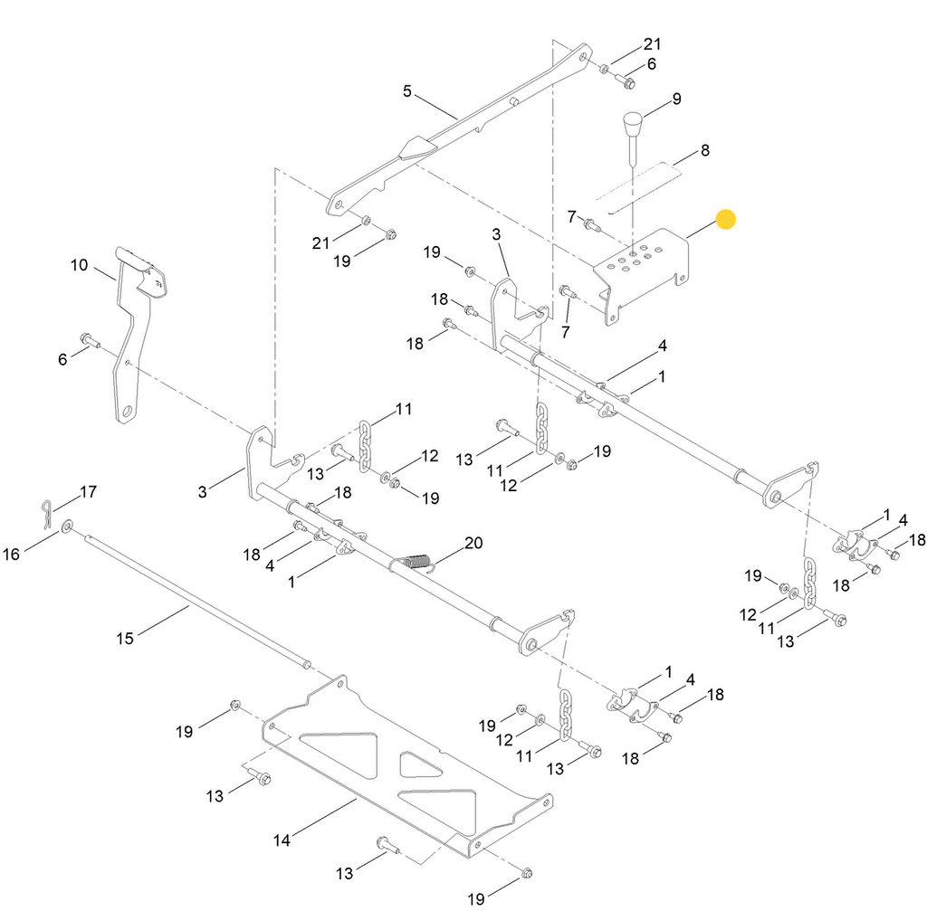 - 145-0557-01 - HEIGHT OF CUT LINK - (Connects the Front Mower Deck Pivot Arm/Foot Pedal Combo to the Rear Pivot Arm and Enable the Operator to use the Height of Cut (HOC) Selection Bracket and Pin to Set his Preferred Cut of Height as well as lift the Front and Back of the Mower Deck Simultaneously) x1 Per Unit