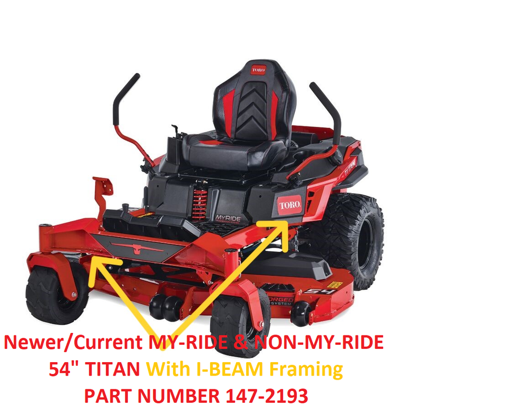 Toro OEM 147 2913 Mower Deck Belt is Crafted only from the Finest of Materials and Rigorously and Extensively Tested to verify it withstands the toughest of Operating Conditions. Expertly crafted from premium Aramids and/or Kevlar materials, the Toro OEM 147-2913 Is made to Fit Toro Current 54" TITAN Models (* Only Current I-BEAM Framing Titan Models - Refer to Model Fit Chart, Associated Parts Chart and Special Notes). Don't settle for imitations or substitutes when you can have - worry-free, designed to fit options, knowing that your Toro Mower Deck Belts are built, tested, and designed specifically to OEM Standards and Expectations. Please refer to the Images above; Product Specifications and the Model Fit guide below to ensure proper fit.