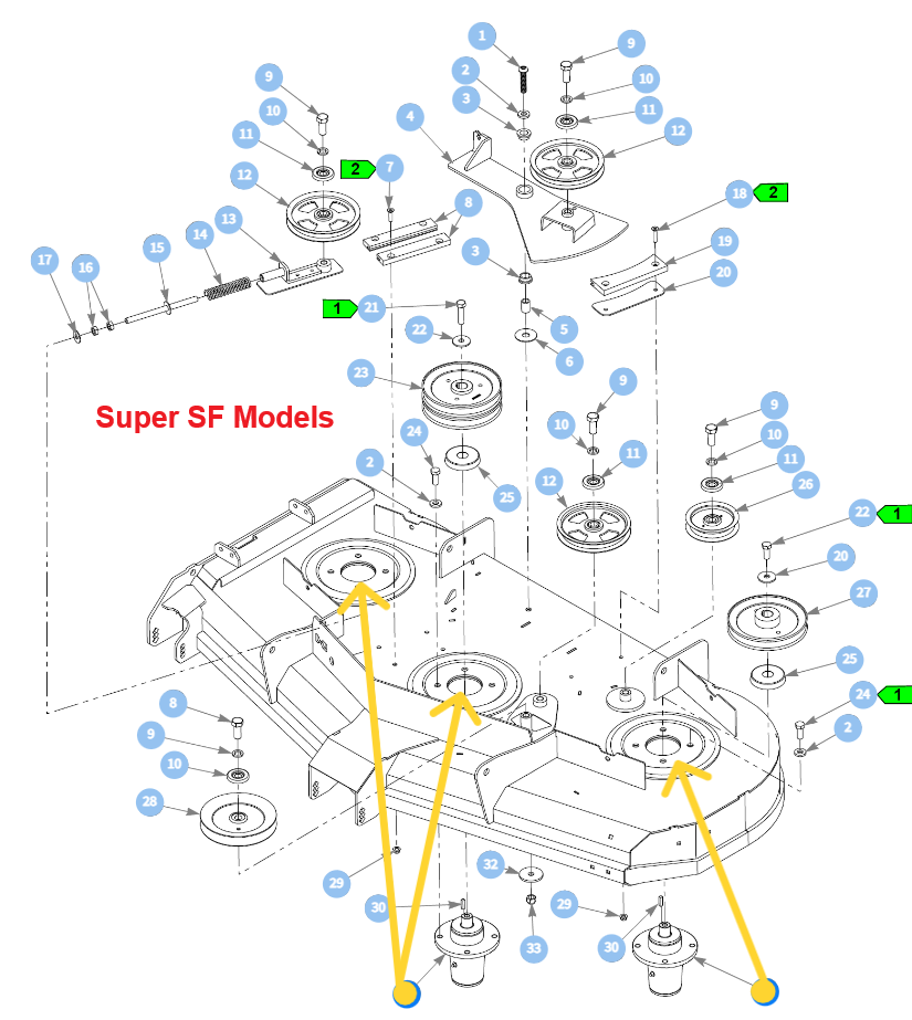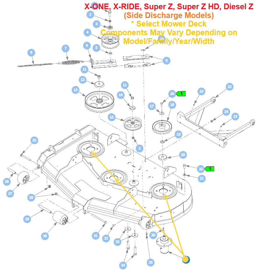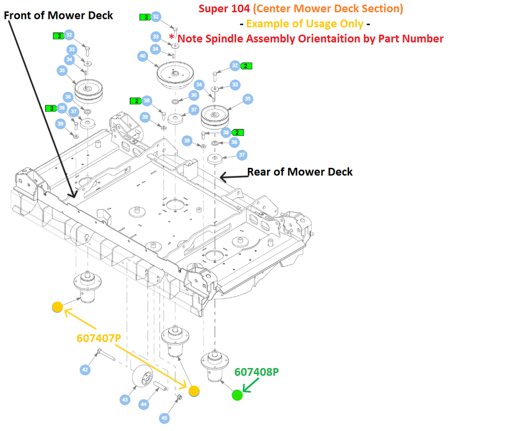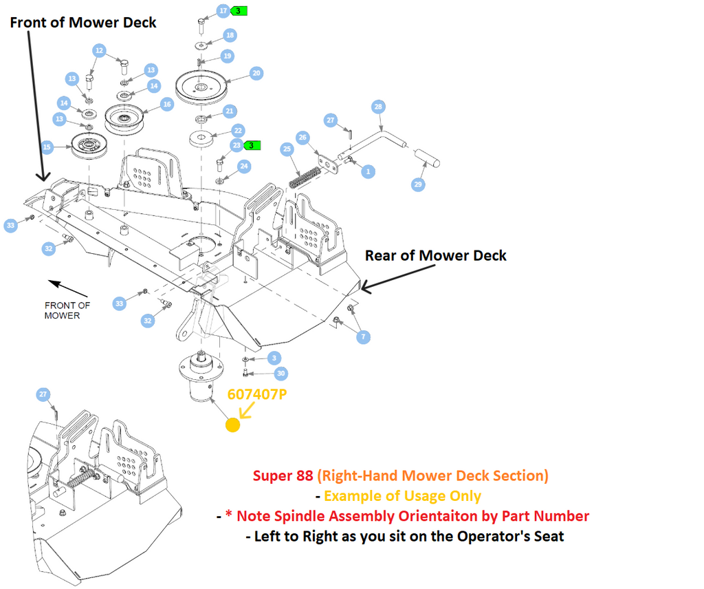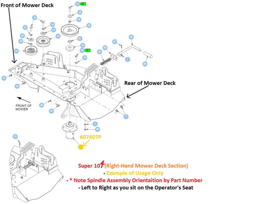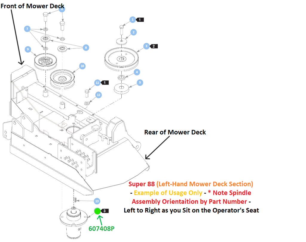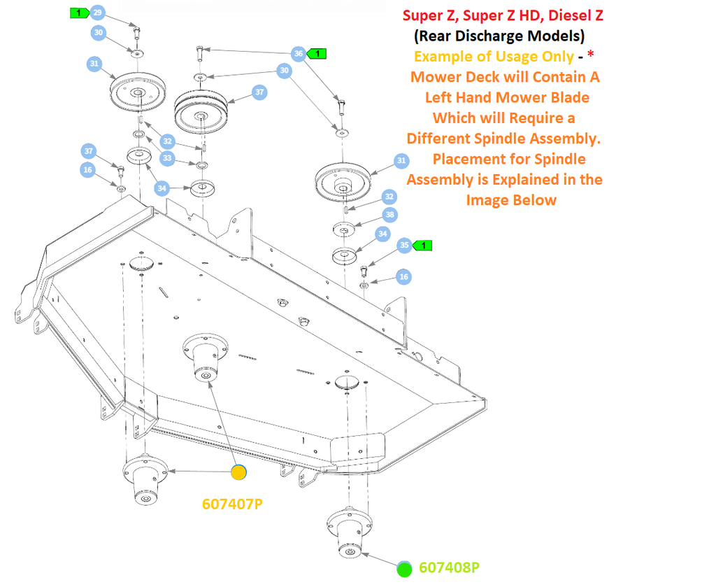 Important Note: 607407P will be used on Side and Rear Discharge Whereas 607408P will Only Be Used on Only Rear Discharge Models and Will be Used in Conjunction with 607407P. In Oder to Eliminate Confusion as to Which Spindle Assembly is Required for Each Location on your Mower Deck Refer to the Images Above - Images are Organized for Each Family/Series of Mower that 607408P Will be Used On.