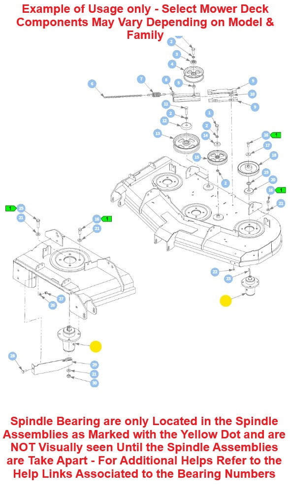 Hustler OEM 607407P BEARING KIT Contains Two Individual 607955 Bearings (The Upper & Lower Bearing that is Required for Each Spindle Assembly) The Superior OEM Hustler 607955 or 607407P BEARING KIT Roller Bearing contains High Quality Allow Roller Bearings built to withstand high impact scenario. The Hustler OEM 607995 or 607407 Bearing Kit Bearing is made with precise sizing allowing it to fit snuggly inside the Hustler Heavy-Duty Cast Spindle Assemblies on the Hustler Mower Decks. Part Number 607955 and 607407P Bearing Kit is used primarily in the Hustler Commercial X-ONE, X-RIDE, Super Z, Super Z HD, Diesel Z, Super S, Super 104, Super SF and Super 88 Series Mower Decks. Please Refer to the Images above, Special Notes and Help Links below to ensure a proper fit. Click on the Part Numbers and Help Links to be redirected.