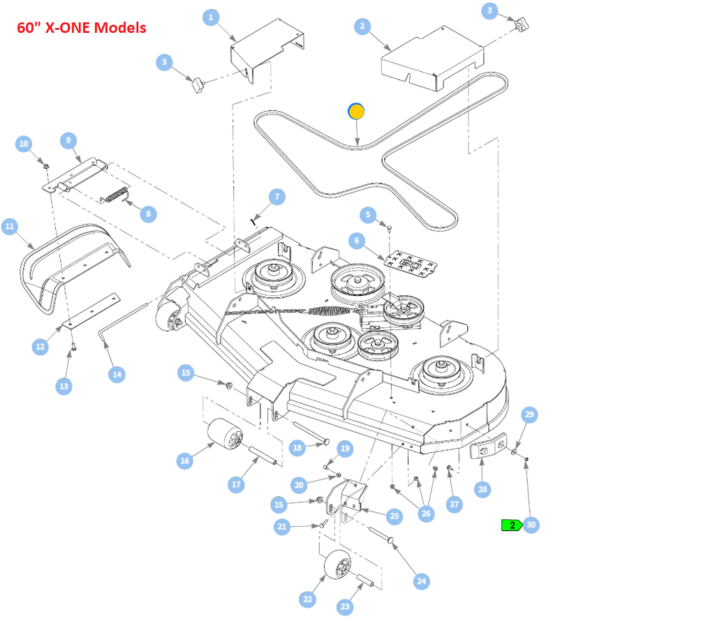 - 60" X-One & X-ONEi Model (Wide Range of Years - Side Discharge XR7 & VX4 Mower Deck - * REFER PART REFERENCE CHART if Applicable)