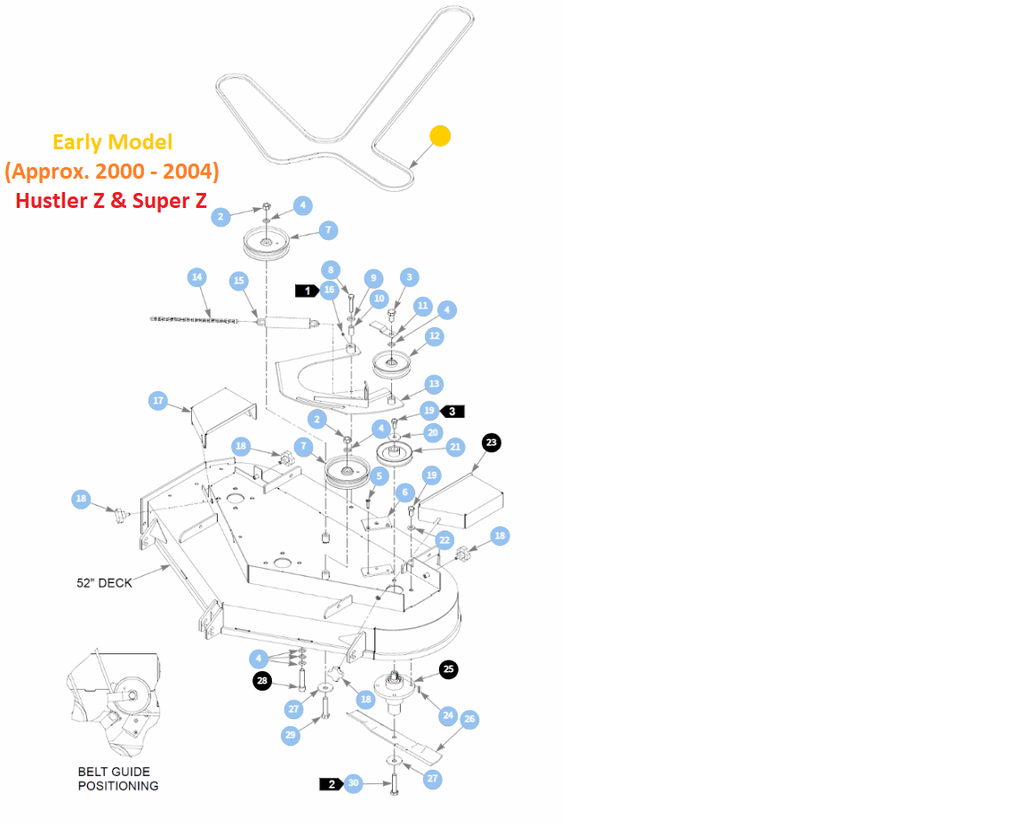 - 52" Approx. 2000-2004 Hustler Z & Super Z Models (Side Discharge XR7 Mower Deck)