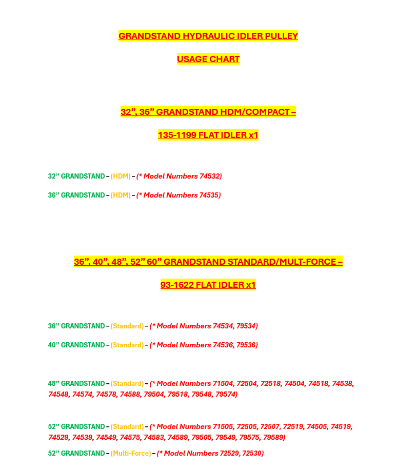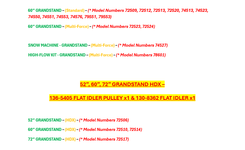 48", 52", 60" GRANDSTAND STANDARD & MULTI-FORCE MODELS ONLY