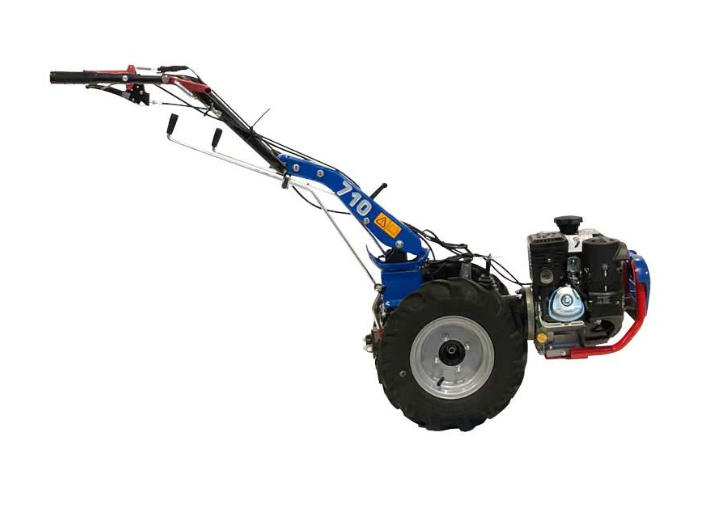 The 710 is lightweight, compact in size, and loaded with BCS quality. Designed for decades of dependable service, its all-gear driven transmission, automotive-style clutch, and powerful Kohler CH270 Command Pro engine make this a great investment for those interested in a basic range of attachments. Because the engine’s power is not lost due to the inefficiency of belts, the tractor comfortably handles an 18” or 20” rear-tine tiller, hiller furrower, 30” or 40” sickle bar mower, 24” snow thrower, water transfer pump, and more.