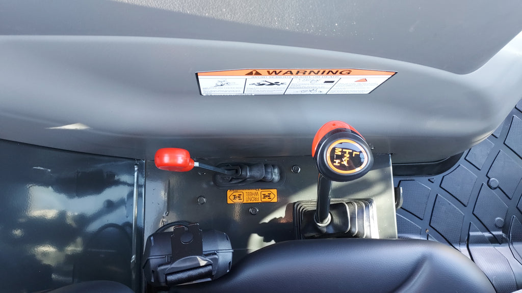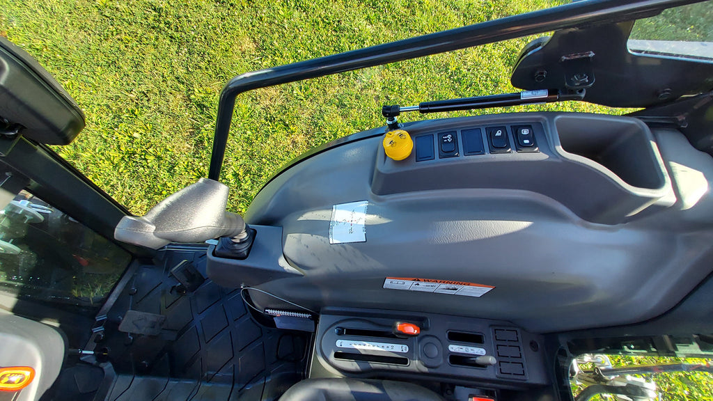 - Cab-Integrated Joystick: The joystick lever is easy to reach for loader work and is strategically positioned to maintain visibility. The molded grip feels comfortable in your hand and makes the front-end loader respond intuitively to your command.