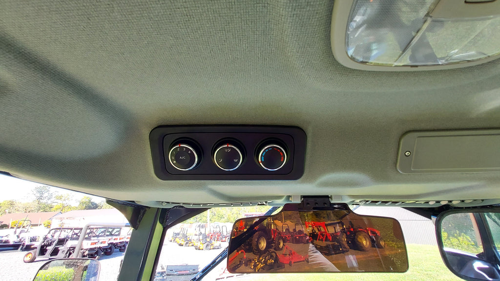 These tough tires have deep lugs for optimal traction and self-cleaning in soft soil and mud. They also deliver more power to the ground when towing heavy loads or pulling implements. - Enclosed Cab With Full HVAC: The sealed cab – complete with a powerful and efficient heat and air conditioning system – provides all-weather comfort while protecting your ability to get the job done in any season.