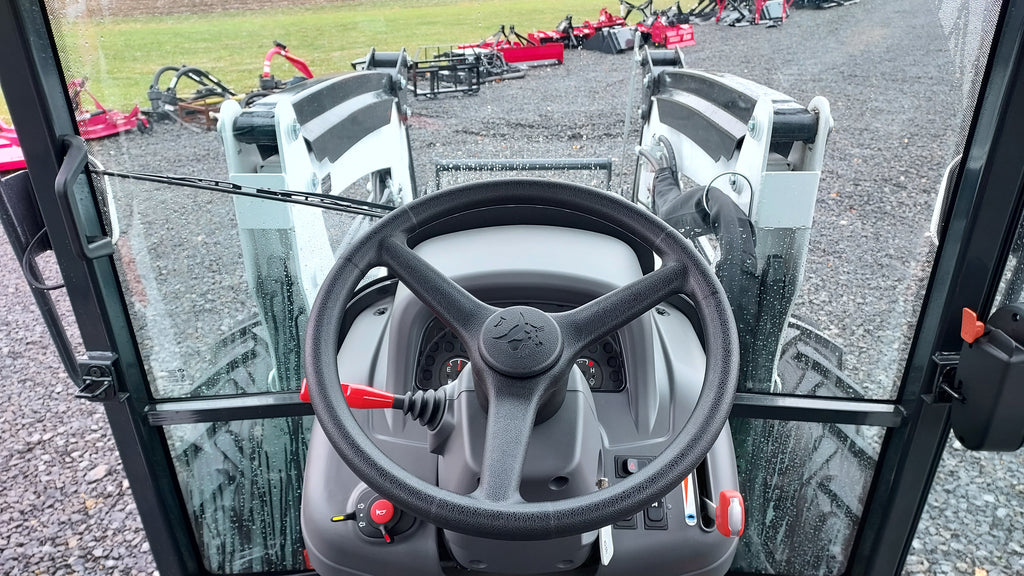 - Panoramic Visibility - When you sit in the tractor’s cab, you’ll quickly appreciate the panoramic visibility – made possible with wide glass panels and minimal obstruction. A window to the 3-point hitch ensures that you can monitor implement operations and work performance without having to frequently step out of the cab.