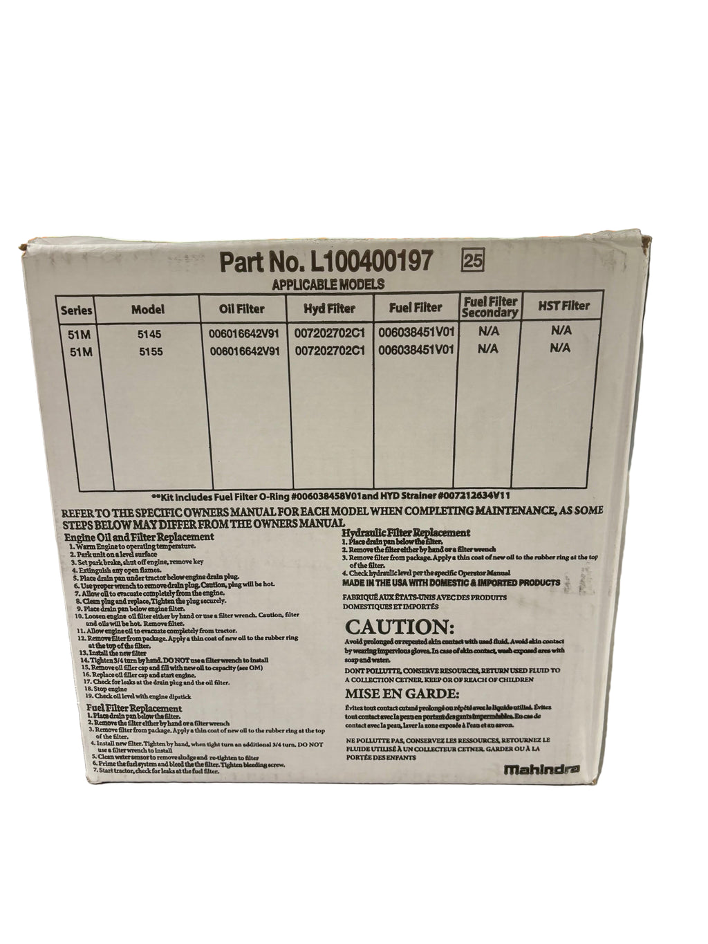 New OEM Genuine Mahindra Filter Service Kit L1004000197 / L100400197. Contains these filters.